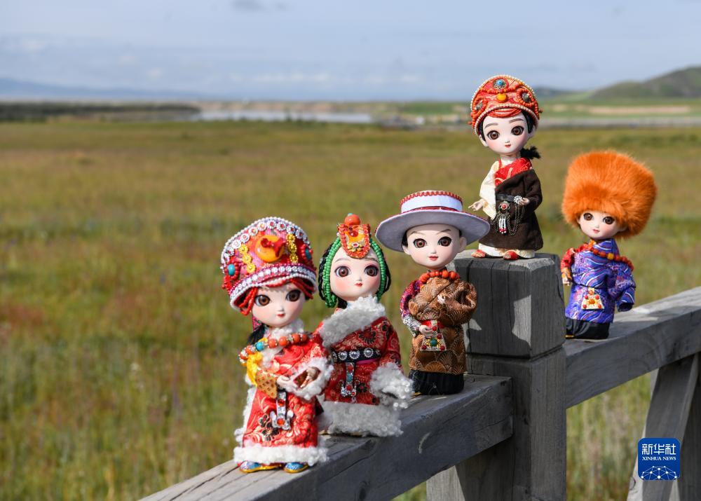在四川省阿壩藏族羌族自治州若爾蓋縣唐克鎮(zhèn)白河社區(qū)的手工合作社內(nèi),擺放著眾多精致漂亮的手工娃娃,它們服飾各異,大小不同,頗具民族風(fēng)情。它們的藏族名字叫“亞一則則”,意為“吉祥娃娃”。