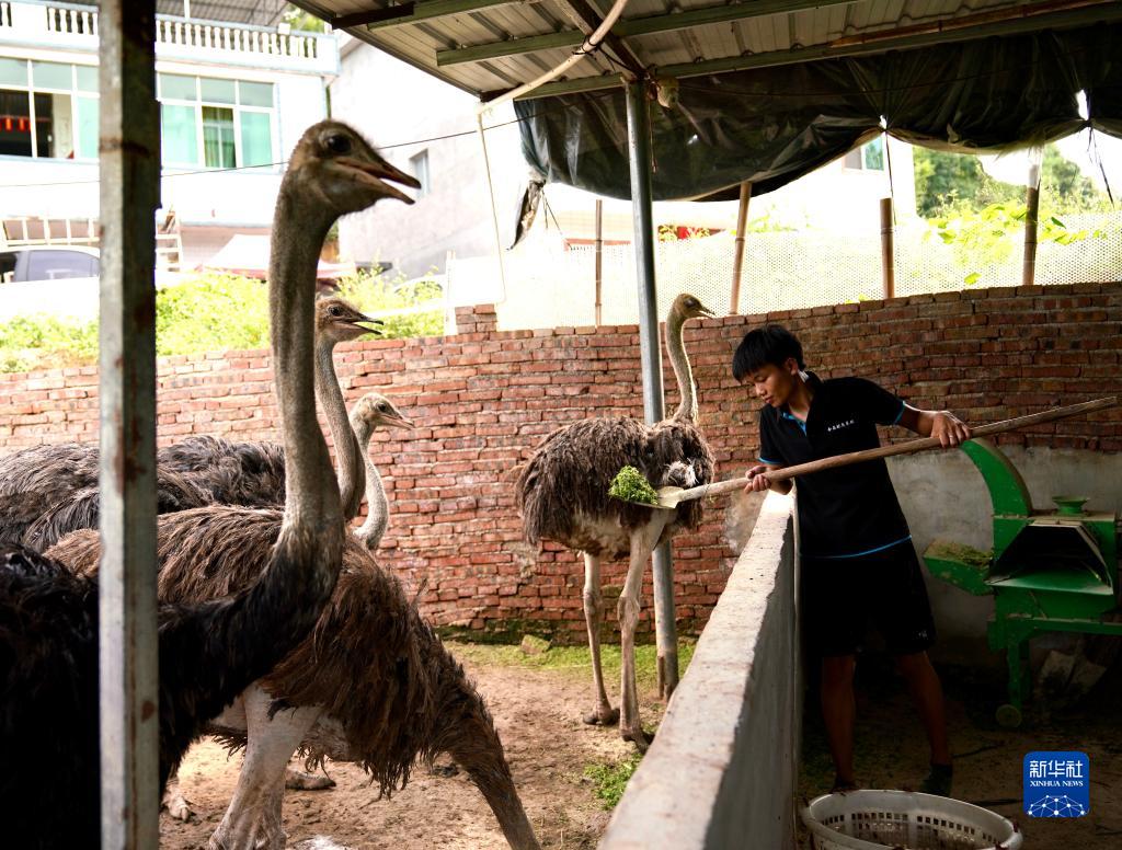 9月13日,吳錦彪給鴕鳥喂食。新華社記者 胡晨歡 攝