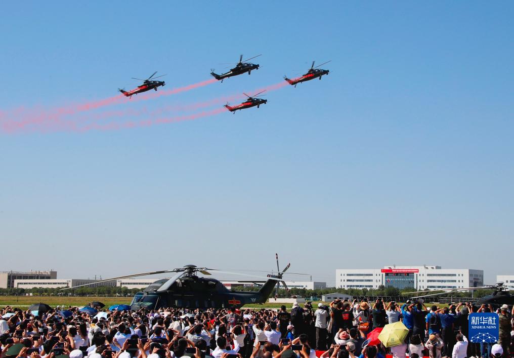 當日,第六屆中國天津國際直升機博覽會在天津市空港經(jīng)濟區(qū)開幕。陸軍“風雷”飛行表演隊在開幕式上進行飛行表演,先后向觀眾演示三機芭蕾、尾追螺旋、四機開花等8個課目的特技飛行動作,展示了陸軍航空兵部隊轉(zhuǎn)型建設和實戰(zhàn)化訓練成效。