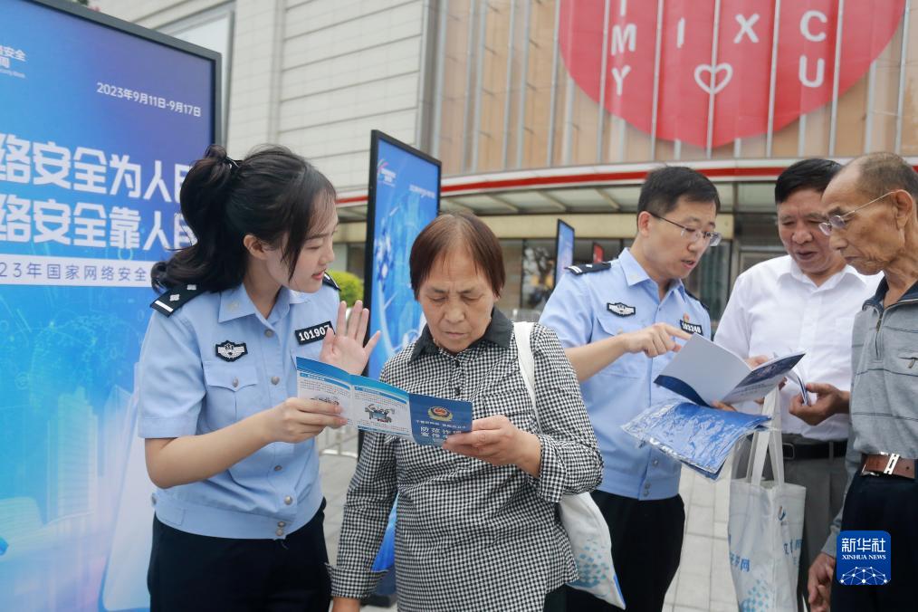9月14日,在江蘇省揚(yáng)州市邗江區(qū)雙橋街道的廣場(chǎng)上,民警向人們講解網(wǎng)絡(luò)安全和防范電信詐騙的知識(shí)。