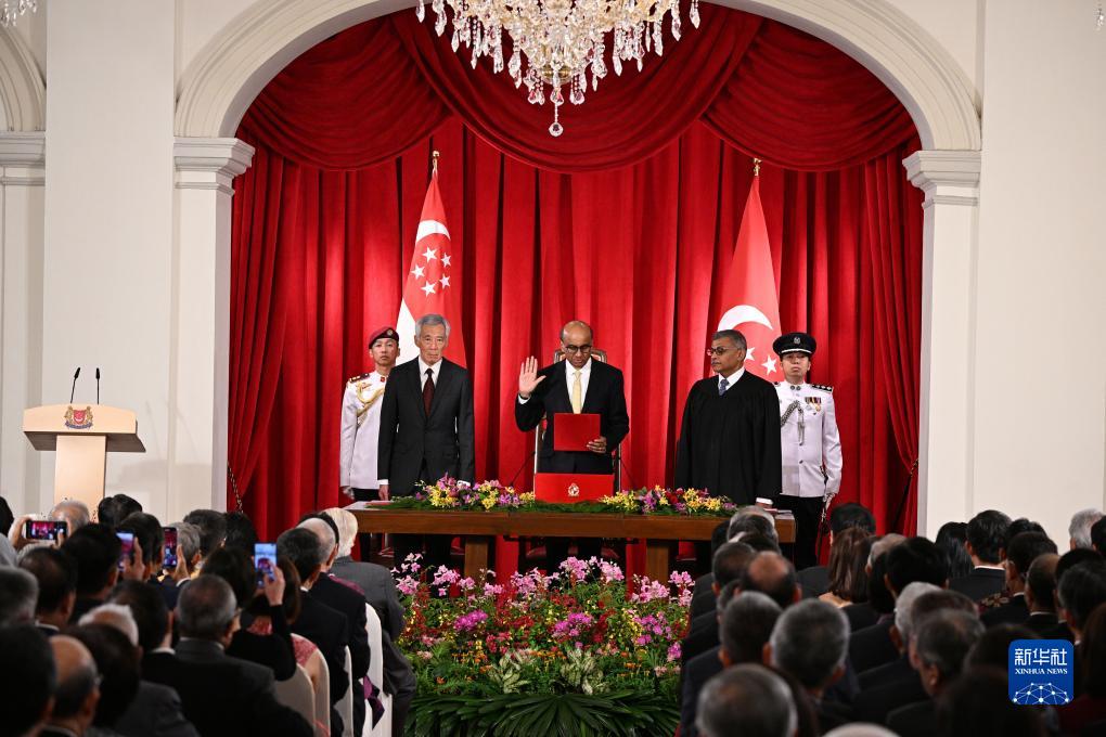 新加坡總統(tǒng)尚達(dá)曼14日晚在總統(tǒng)府宣誓就職。