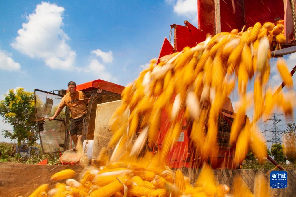 9月14日,村民在河南省商丘市夏邑縣會亭鎮孫莊村收獲玉米。