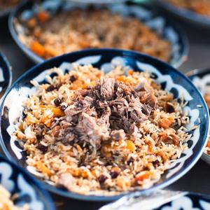 中亞抓飯中心位于塔什干電視塔附近,被人們譽為“中亞第一”抓飯中心,每天向人們提供美味的抓飯。抓飯是烏茲別克斯坦的傳統美食,其主料為大米、胡蘿卜、羊肉,不同地方的抓飯風味各異。抓飯的制作過程講究嚴謹,主料與香料的融合令人唇齒留香,回味無窮。