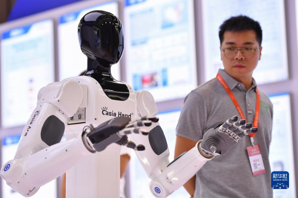 9月15日,參觀者在2023世界計(jì)算大會(huì)專(zhuān)題展上參觀服務(wù)機(jī)器人。