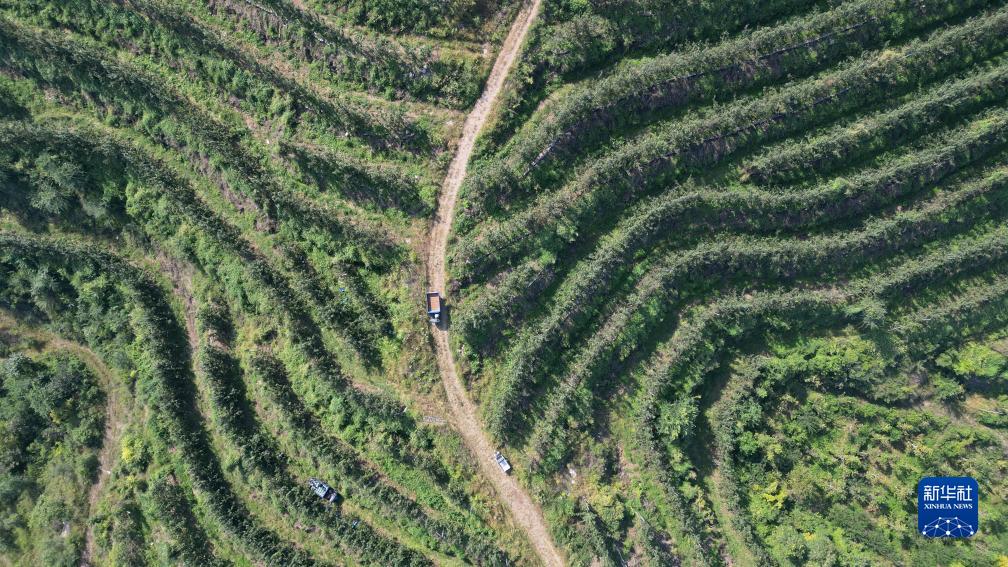 這是河北省玉田縣唐自頭鎮(zhèn)一處經(jīng)荒山開發(fā)而建的果園(9月15日攝,無人機照片)。