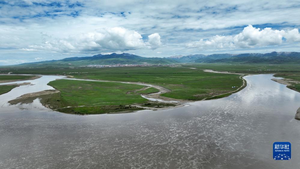 黃河流經甘南藏族自治州瑪曲縣境內(7月6日攝,無人機照片)。