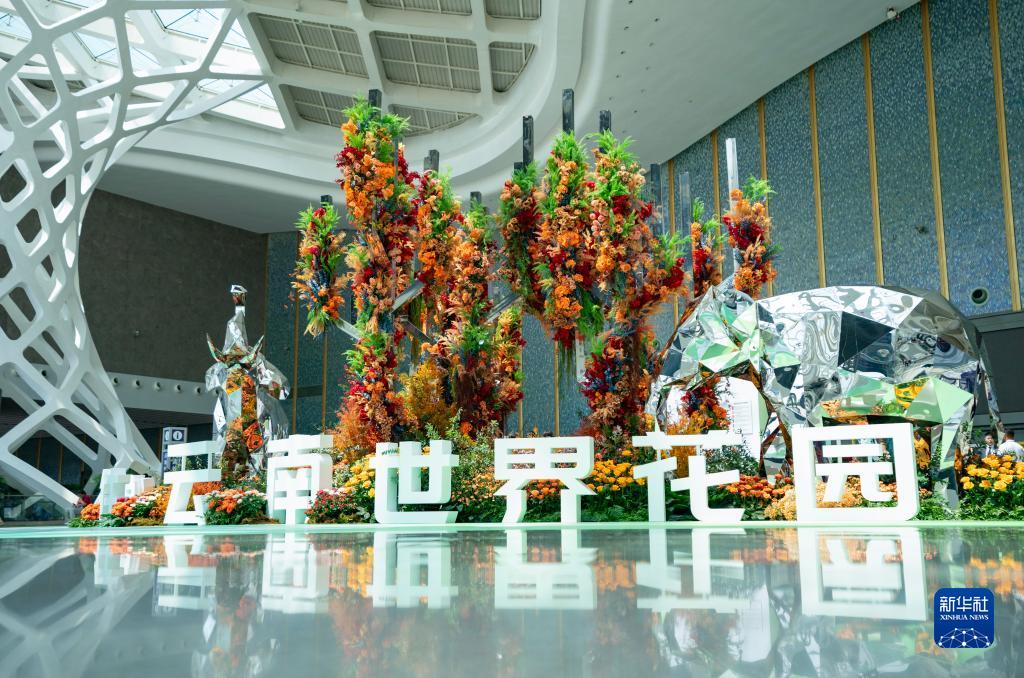 這是9月15日在第二十一屆中國昆明國際花卉展上拍攝的花藝裝置。