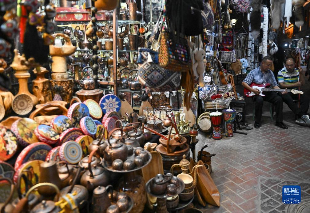這是9月13日在新疆喀什古城景區(qū)拍攝的一處攤位。