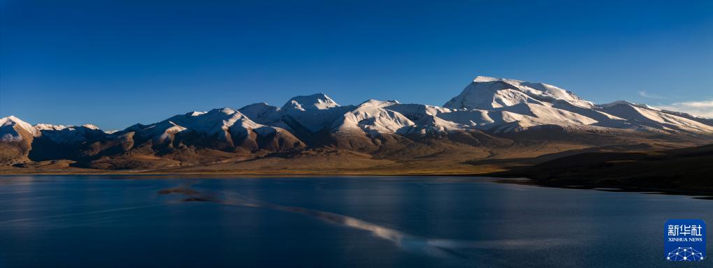 這是傍晚時分的納木那尼雪山和瑪旁雍錯(無人機照片,9月14日攝)。
