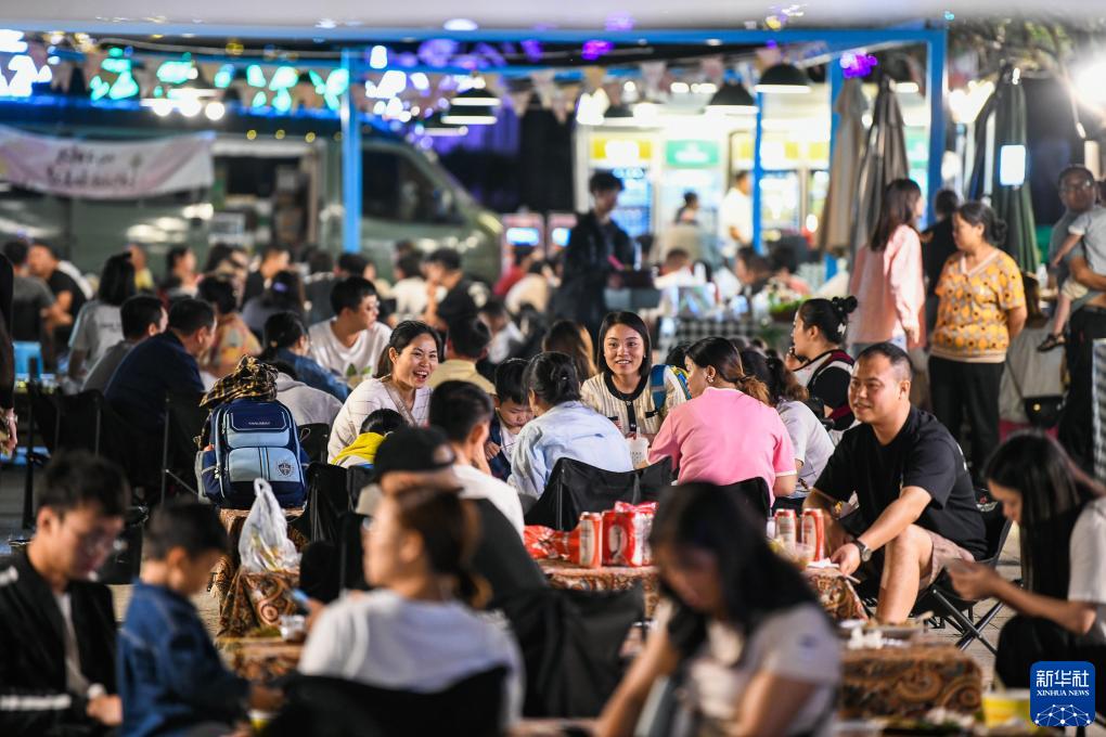 9月14日,游客和市民在興義市馬嶺河夜間消費(fèi)聚集區(qū)吃夜宵。