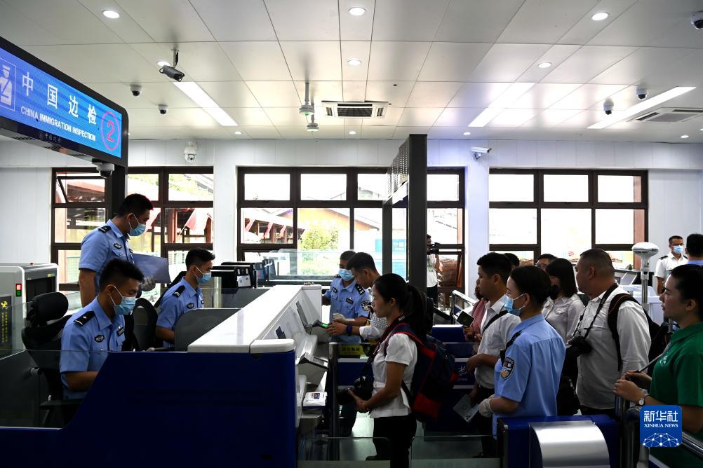 9月15日,在中越德天(板約)瀑布跨境旅游合作區(qū),中國(guó)游客排隊(duì)通關(guān)出境。