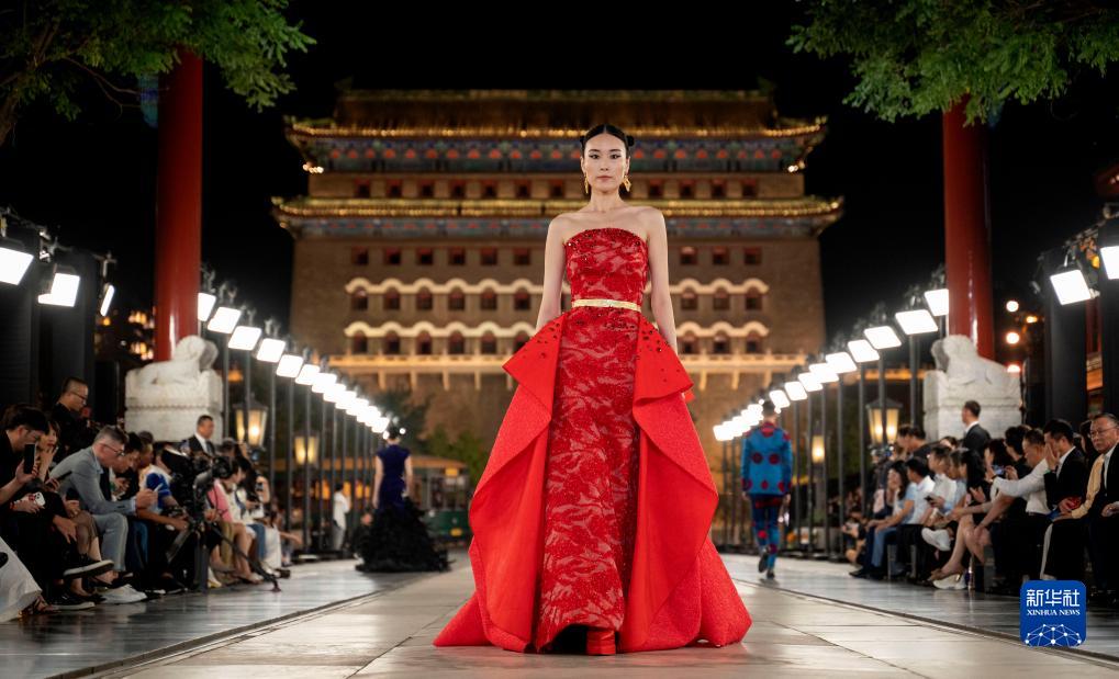 9月15日晚,2024春夏北京時裝周開幕式在北京前門大街舉行,在開幕式上,勞倫斯·許攜高級定制時裝上演“壯美中軸線”時尚大秀。