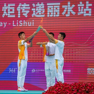 當日,杭州亞運會火炬在浙江省麗水傳遞。