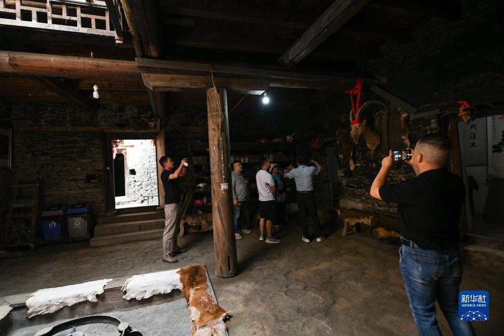 游客在桃坪羌寨的碉房內部參觀(9月13日攝)。