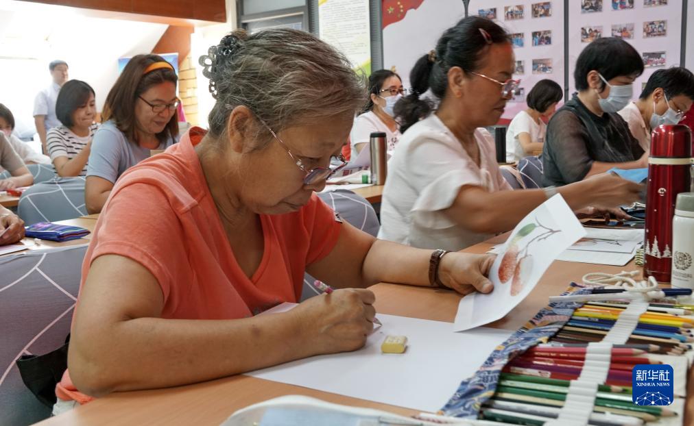 北京市朝陽區(qū)勁松街道首城社區(qū)的居民在社區(qū)新時代文明實踐所參加彩鉛繪畫班(9月13日攝)。