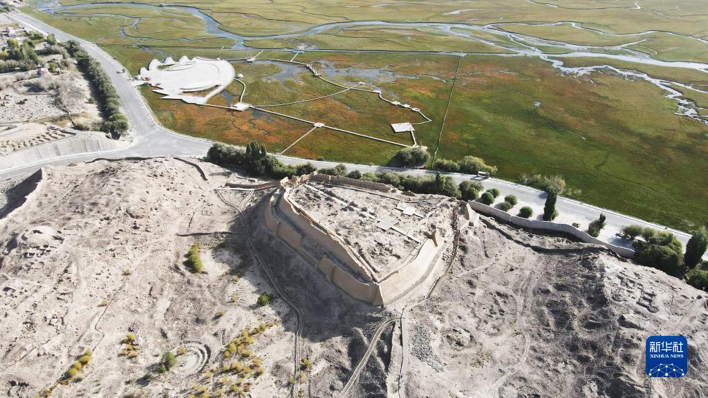 位于新疆塔什庫爾干塔吉克自治縣的石頭城遺址與金草灘濕地相鄰(9月6日攝,無人機照片)。