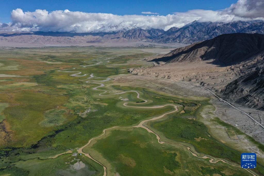新疆塔什庫爾干塔吉克自治縣塔合曼濕地景觀(8月27日攝,無人機照片)。