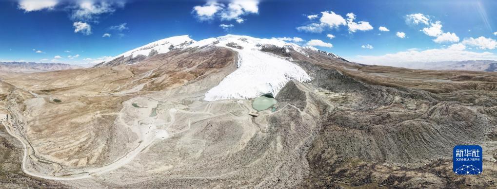 這是在新疆塔什庫爾干塔吉克自治縣慕士塔格冰川公園拍攝的冰川景觀(9月6日攝,無人機全景照片)。