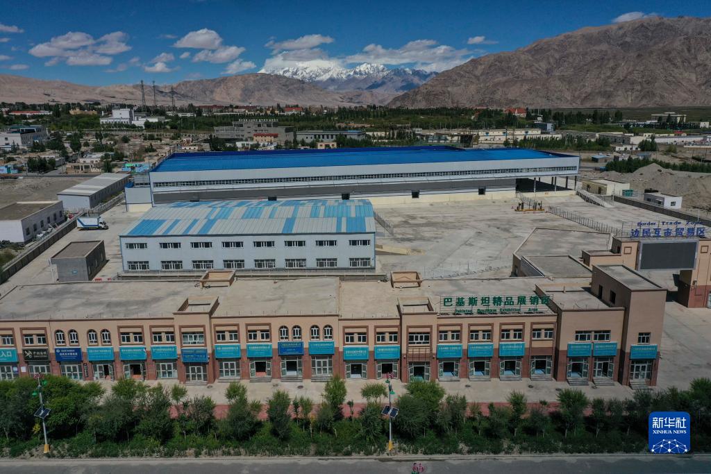 位于新疆塔什庫(kù)爾干塔吉克自治縣的中巴邊民互市貿(mào)易區(qū)(8月28日攝,無(wú)人機(jī)照片)。
