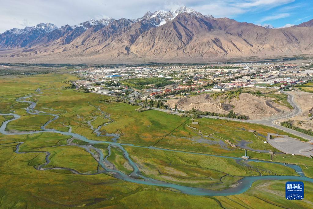 新疆塔什庫爾干塔吉克自治縣縣城風貌(8月28日攝,無人機照片)。