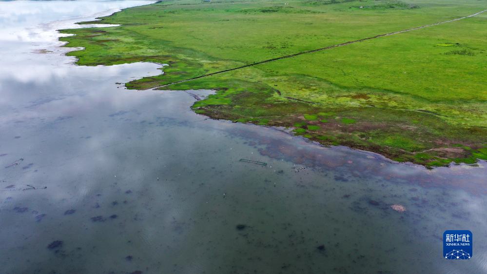 這是甘肅尕海則岔國家級自然保護區尕海濕地的景色(7月7日攝,無人機照片)。