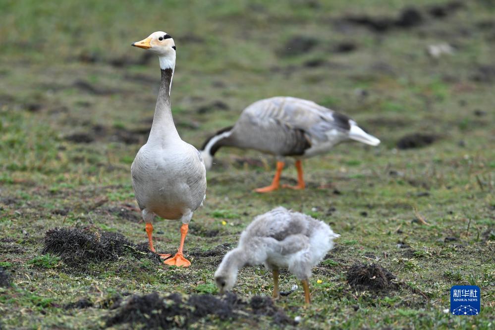這是在甘肅尕海則岔國(guó)家級(jí)自然保護(hù)區(qū)的尕海濕地上拍攝的斑頭雁(7月7日攝)。
