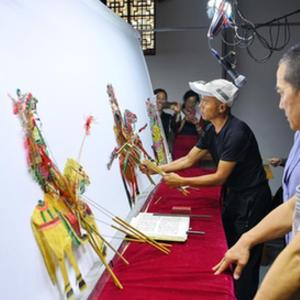 9月16日,皮影戲藝人在玉田縣“非遺會客廳”皮影工坊內(nèi)表演皮影戲。