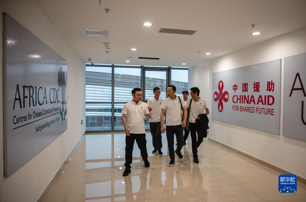 9月11日,中方技術(shù)服務(wù)組在埃塞俄比亞首都亞的斯亞貝巴非洲疾控中心總部大樓內(nèi)開展工作。