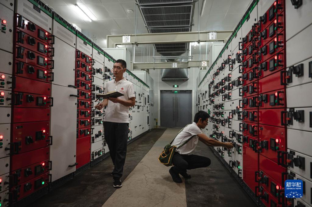 9月11日,中方技術(shù)服務(wù)組成員在埃塞俄比亞首都亞的斯亞貝巴非洲疾控中心總部大樓內(nèi)進(jìn)行電路檢修。