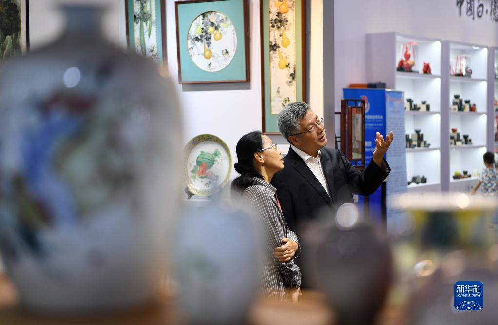 9月16日,參觀者在第二十四屆唐山中國陶瓷博覽會現場參觀。
