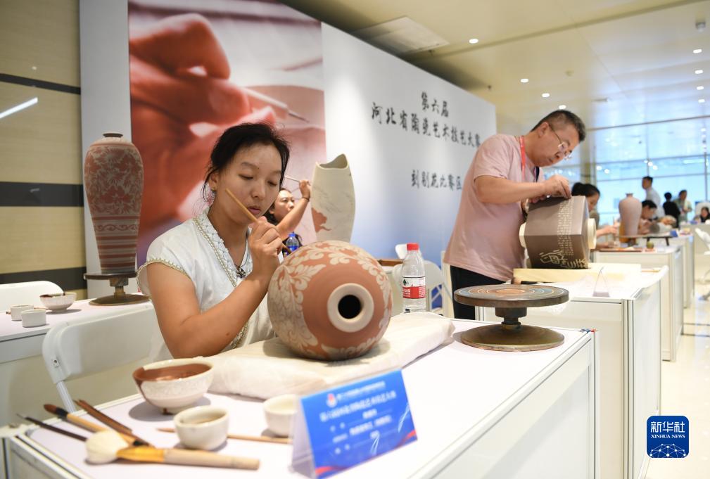 9月16日,在第二十四屆唐山中國陶瓷博覽會(huì)現(xiàn)場,參加陶瓷藝術(shù)技藝大賽的選手在比賽中。
