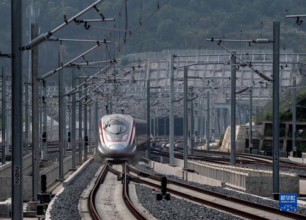 9月14日,一列經(jīng)過(guò)高春成和同事們檢修過(guò)的復(fù)興號(hào)智能配置動(dòng)車組駛出福州南站,進(jìn)行福廈高鐵運(yùn)行試驗(yàn)。
