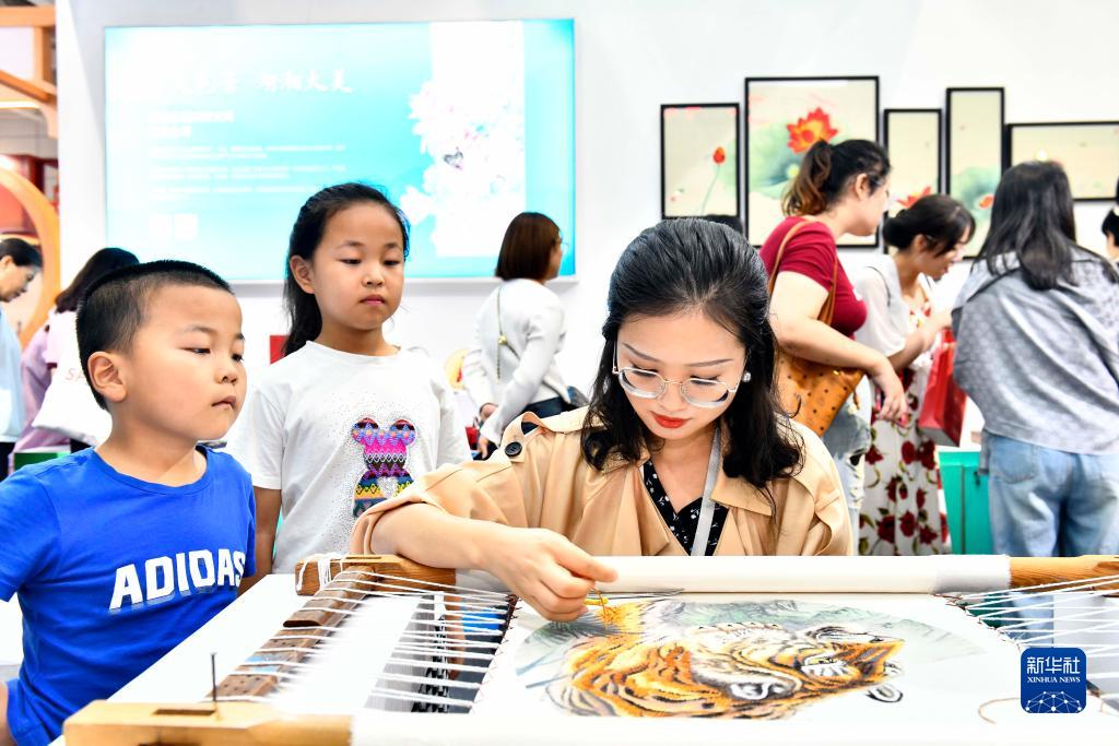 9月16日,在山東國際會展中心,來自湖南的非遺傳承人現場展示湘繡技藝。
