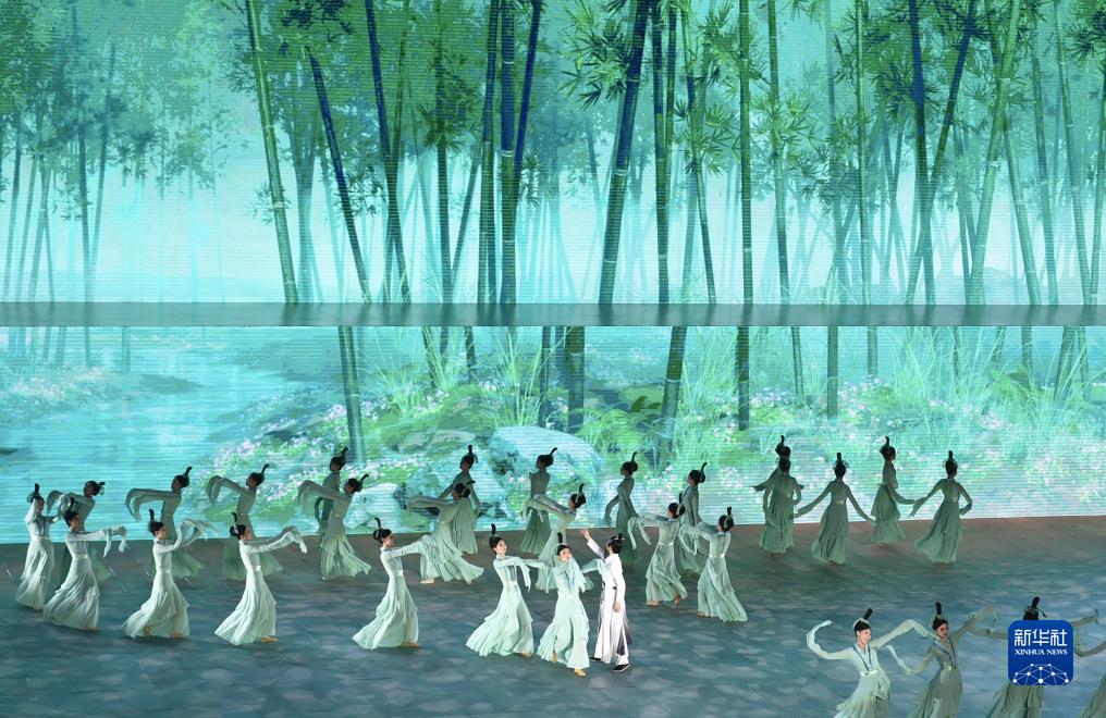 9月16日拍攝的第十一屆中國(guó)·焦作國(guó)際太極拳大賽暨2023云臺(tái)山旅游節(jié)開(kāi)幕式文藝演出現(xiàn)場(chǎng)。
