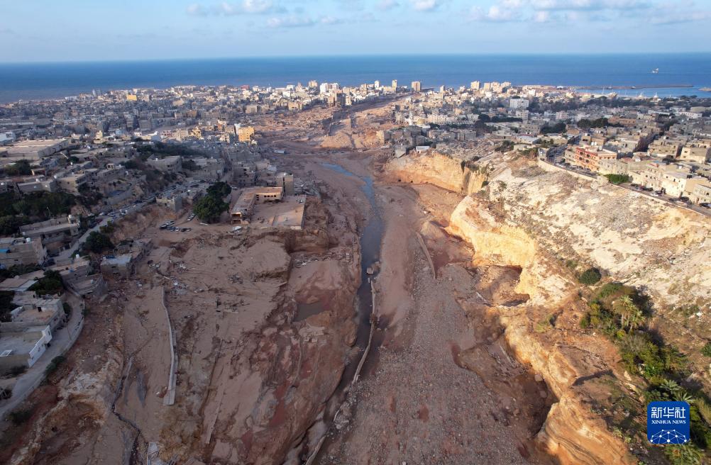 這張9月16日的航拍照片顯示的是利比亞德爾納受災(zāi)地區(qū)的景象。
