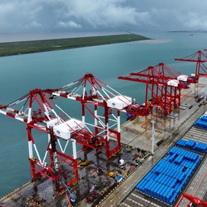 今年1至8月,江蘇南通通州灣新出海口呂四起步港區累計作業船舶數量突破200艘次。其中,集裝箱碼頭開通了直航日本的外貿航線,累計作業船舶138艘次,合計作業量達4.6萬標箱;通用碼頭累計作業船舶65艘次,貨物吞吐量91.53萬噸,航線通達荷蘭、俄羅斯、印度尼西亞、澳大利亞等國。