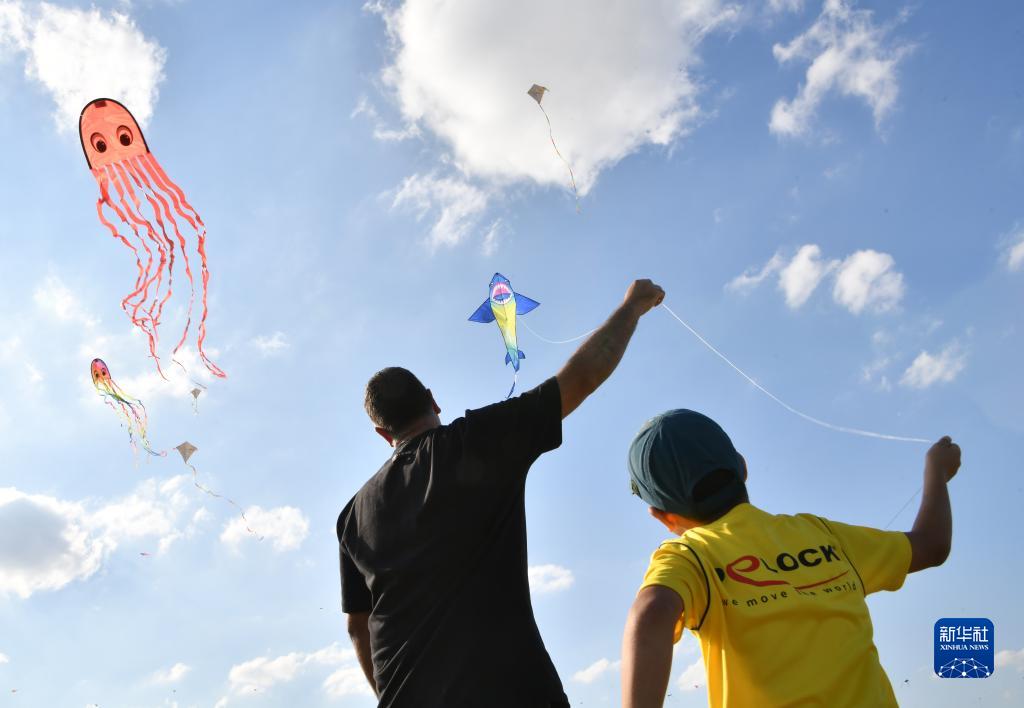 當日,德國柏林舉行2023年巨型風箏節。現場放飛了章魚、青蛙、金魚、小熊等造型的巨型風箏,還吸引眾多市民前來放風箏。