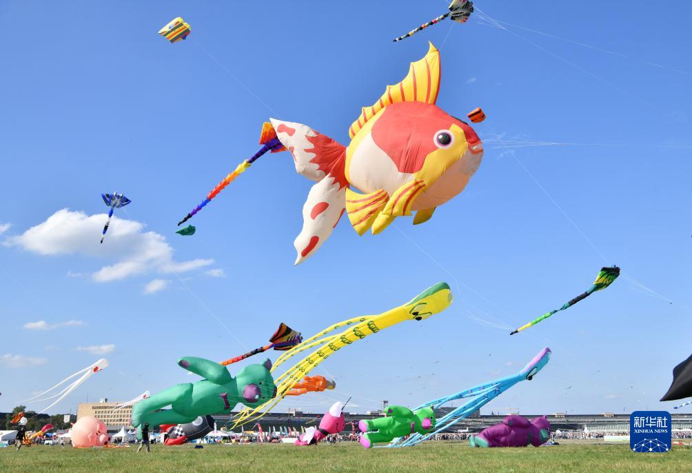當日,德國柏林舉行2023年巨型風箏節。現場放飛了章魚、青蛙、金魚、小熊等造型的巨型風箏,還吸引眾多市民前來放風箏。