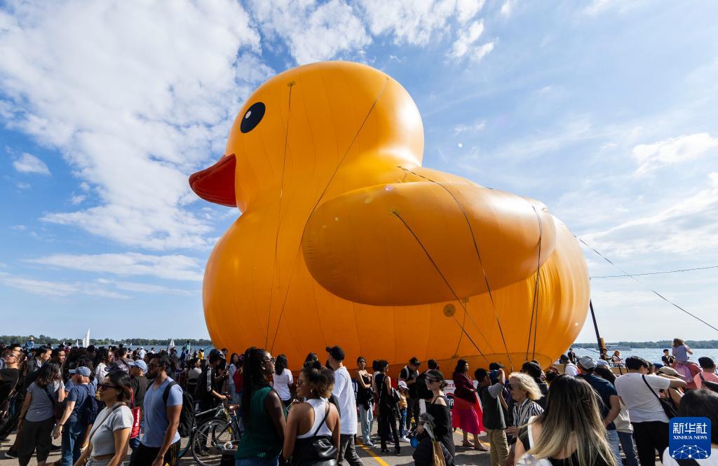 當日,一只6層高、重約13.6噸(30000磅)的橡皮“大黃鴨”亮相多倫多,吸引了眾多游人。這是“大黃鴨”繼2017年后再次來到多倫多,從9月16日至17日向公眾開放。
