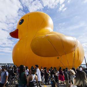 當日,一只6層高、重約13.6噸(30000磅)的橡皮“大黃鴨”亮相多倫多,吸引了眾多游人。這是“大黃鴨”繼2017年后再次來到多倫多,從9月16日至17日向公眾開放。