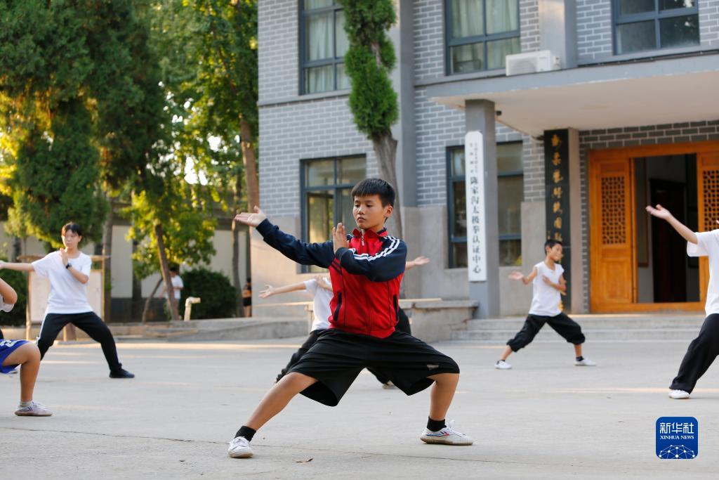 9月14日,河南溫縣陳家溝一家武術學校的學員在練習太極拳。