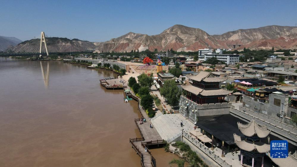 這是位于甘肅省蘭州市西固區黃河北岸的河口古鎮。河口古鎮歷史悠久、文化底蘊深厚,現留存商賈碼頭、戰略要塞、交通樞紐等遺跡(7月9日攝,無人機照片)。