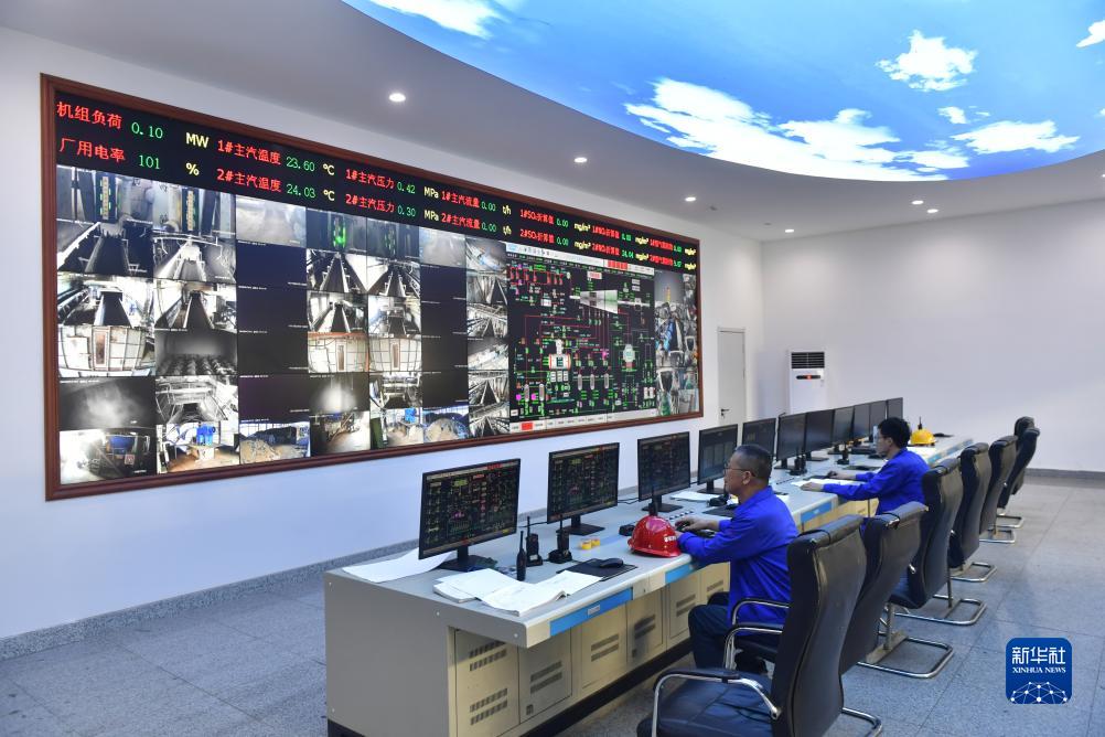 9月15日,丹東銘笙生物質發電有限公司的工人在主控室監控設備運行情況。丹東銘笙生物質熱電聯產項目主要利用水稻、玉米等作物廢棄秸稈和廢木材進行焚燒發電和供熱。