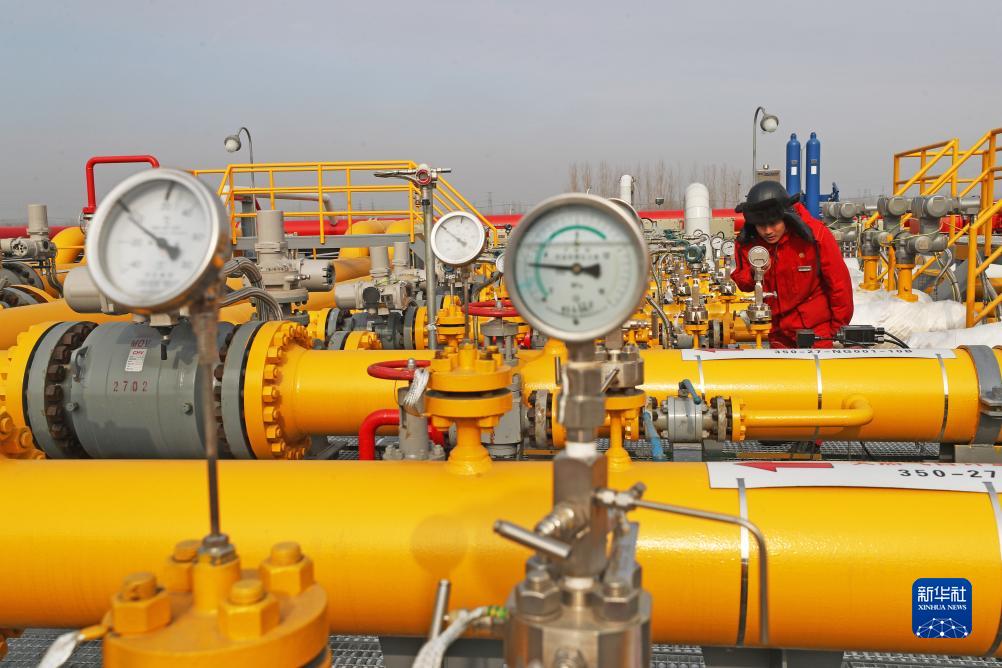 在盤錦遼河油田儲氣庫群,工人在作業區巡檢(2021年2月3日攝)。