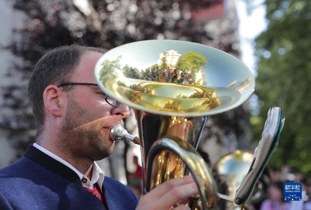 9月16日,樂手參加德國慕尼黑啤酒節開幕大游行。