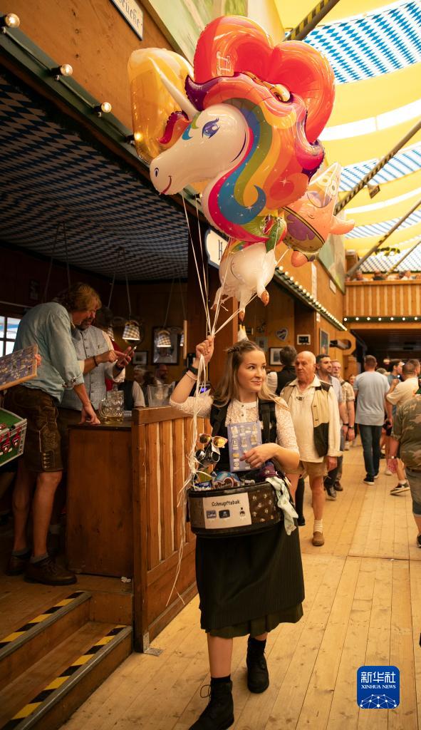 9月16日,工作人員在德國慕尼黑啤酒節(jié)上售賣氣球。