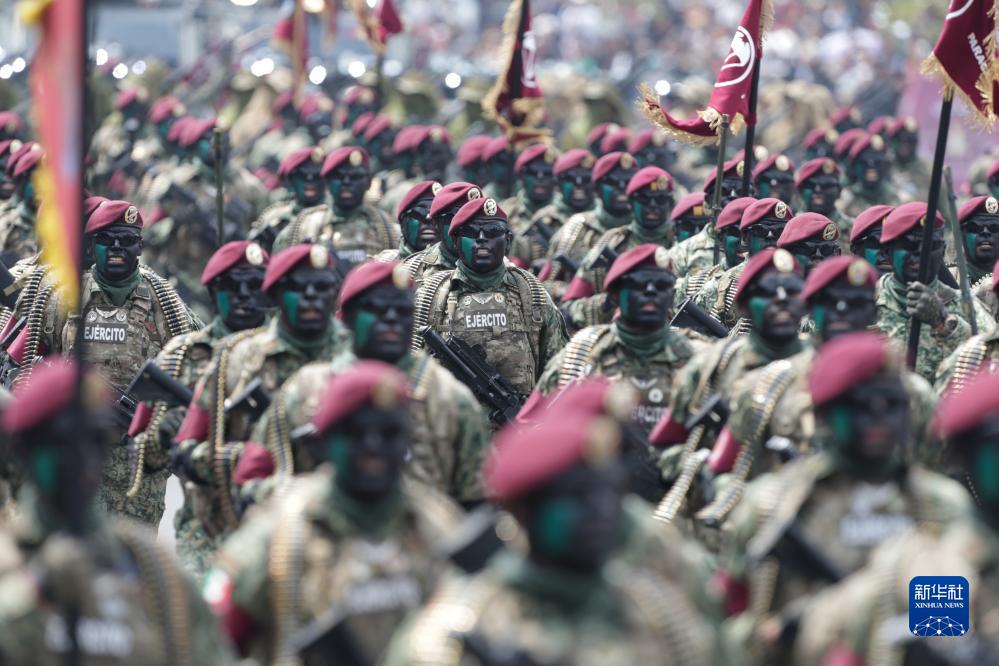 當日,墨西哥在首都墨西哥城的憲法廣場舉行閱兵式,慶祝獨立213周年紀念日。