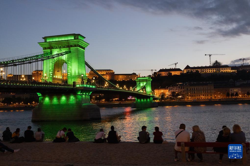 9月16日,人們在匈牙利首都布達佩斯著名地標鏈子橋畔欣賞夜色。