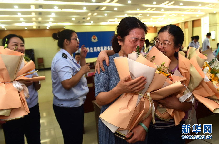 9月15日,國家稅務總局青縣稅務局退休的老稅官們在溫暖的榮退儀式現場留下了感動的淚水。新華網發(巴芳 攝)