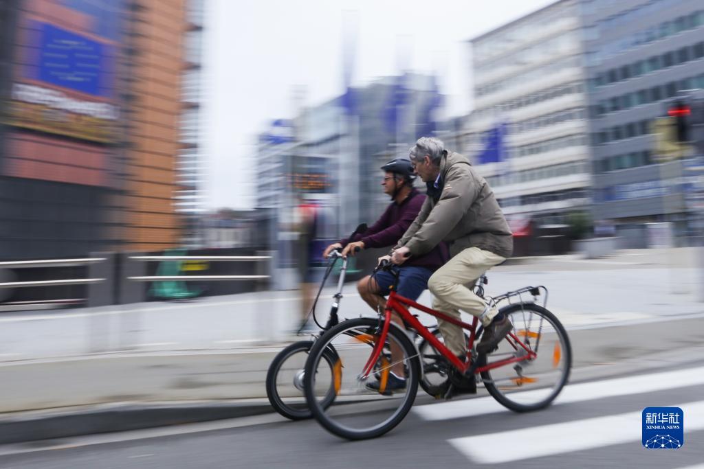 9月17日,人們在比利時布魯塞爾的“無車日”騎自行車出行。